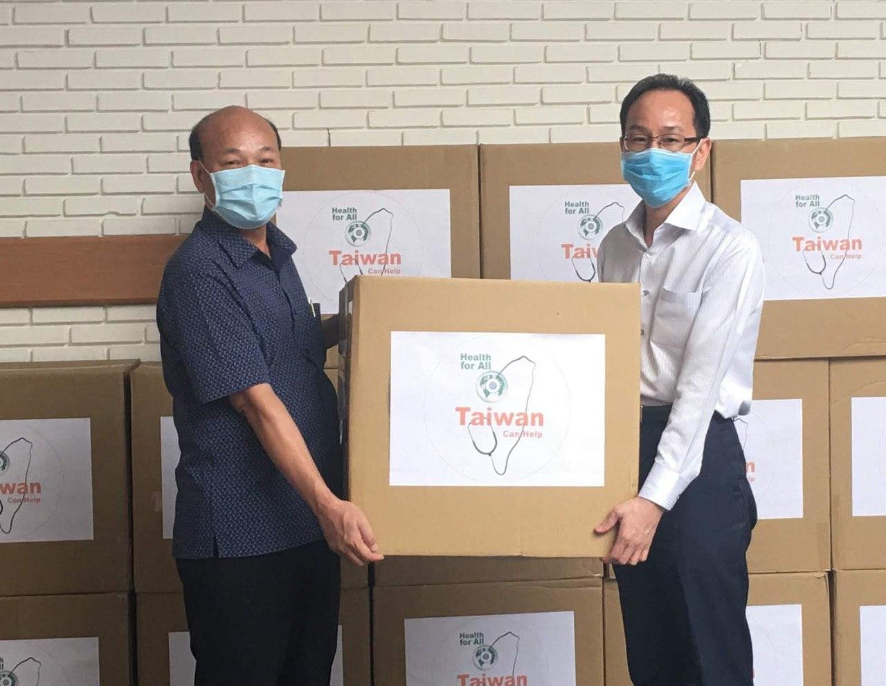 我駐越南代表處石大使瑞琦面交30萬片口罩予越南台灣事務委員會陳維海秘書長。圖片來源:駐越南台北經濟文化辦事處