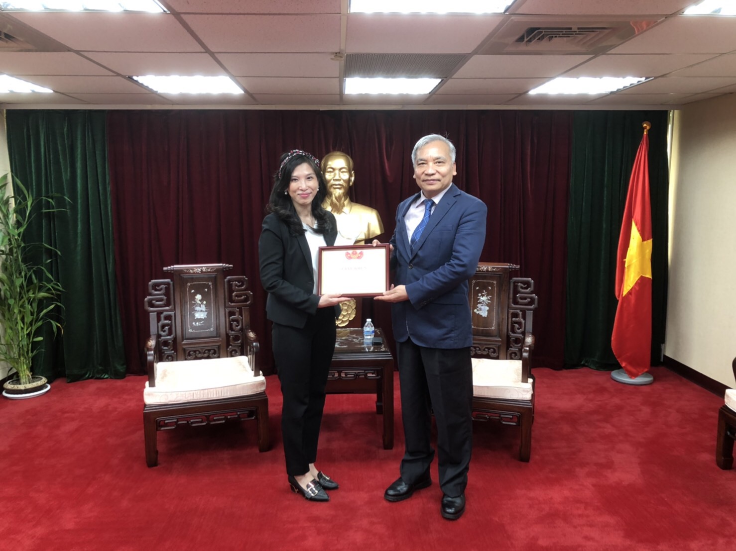 台越經文協會理事長吳品蓁獲越南辦事處表揚
