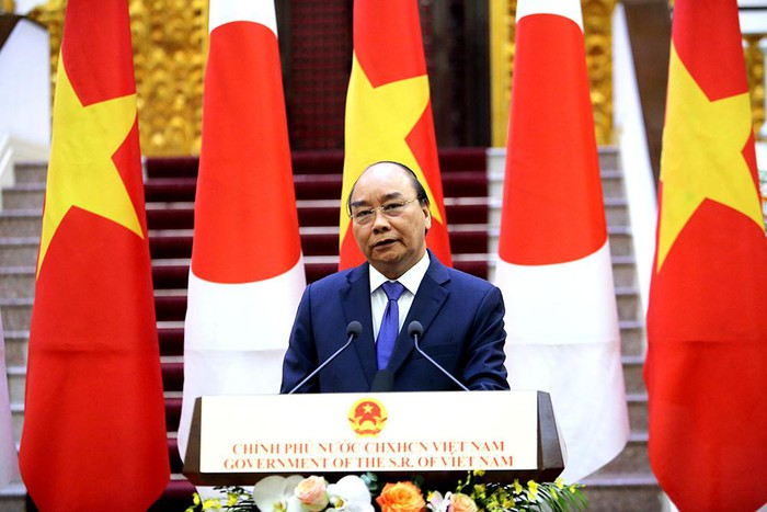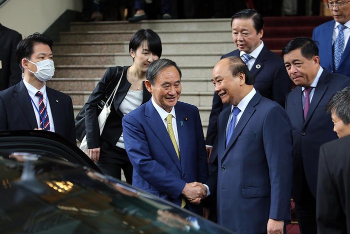 日本首相表示,他與阮春福已經交流關於許多問題及升華互相信任關係的意見,即便在疫病情形中,日本-越南關係仍有許多合作潛力及今日的會談“很有益、有效,讓再確認該潛力”。