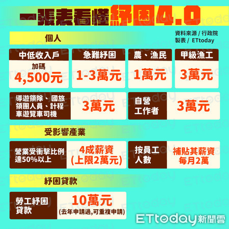 一張表看懂紓困4.0 蘇貞昌裁示:企業薪資補貼直接2萬元