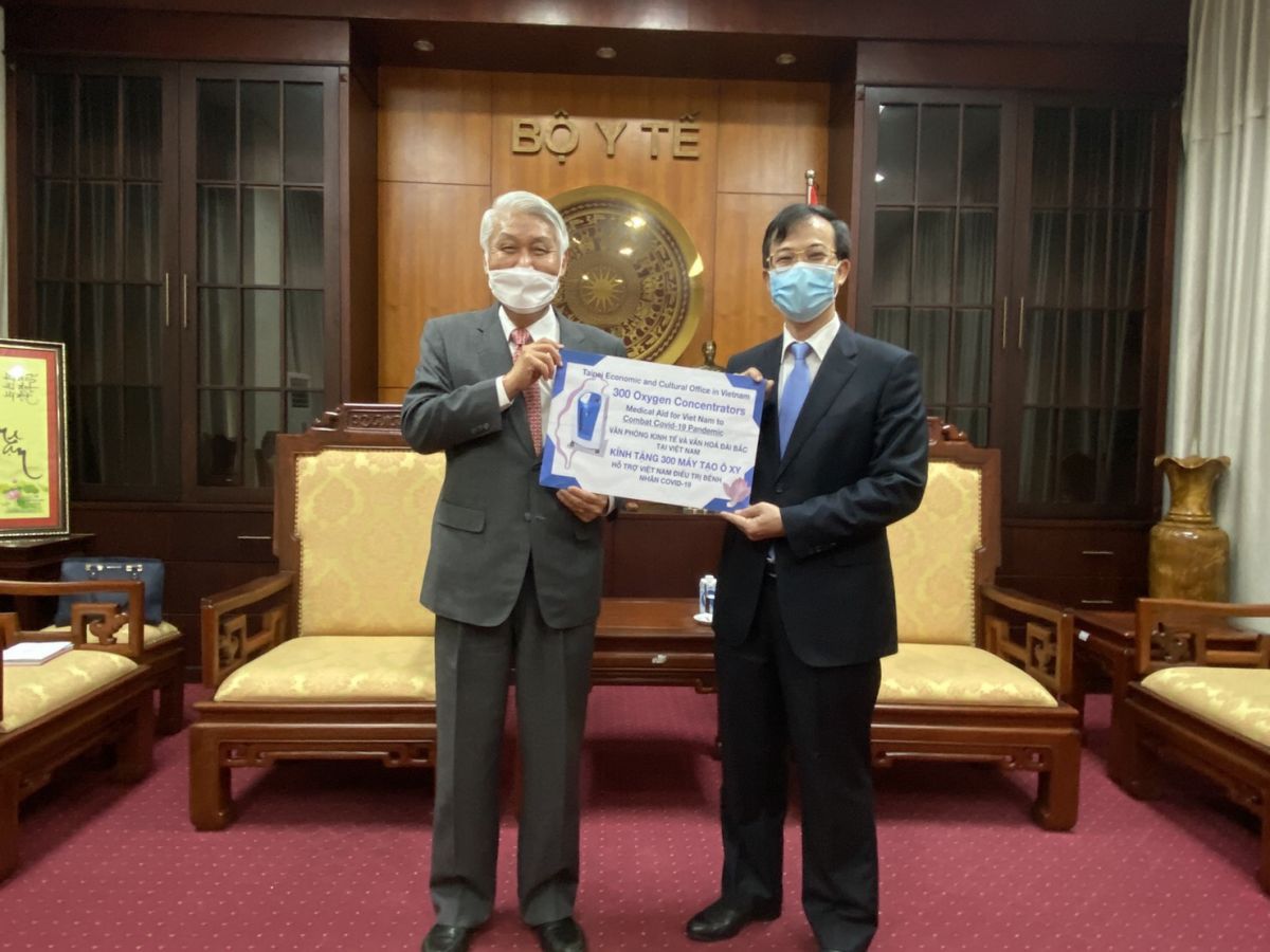今天由石大使代表我們台灣政府外交捐贈300台製氧機給越南政府,由越南總理府台灣事務委員會陳維海秘書長 代表越南政府接受我們的致贈。
