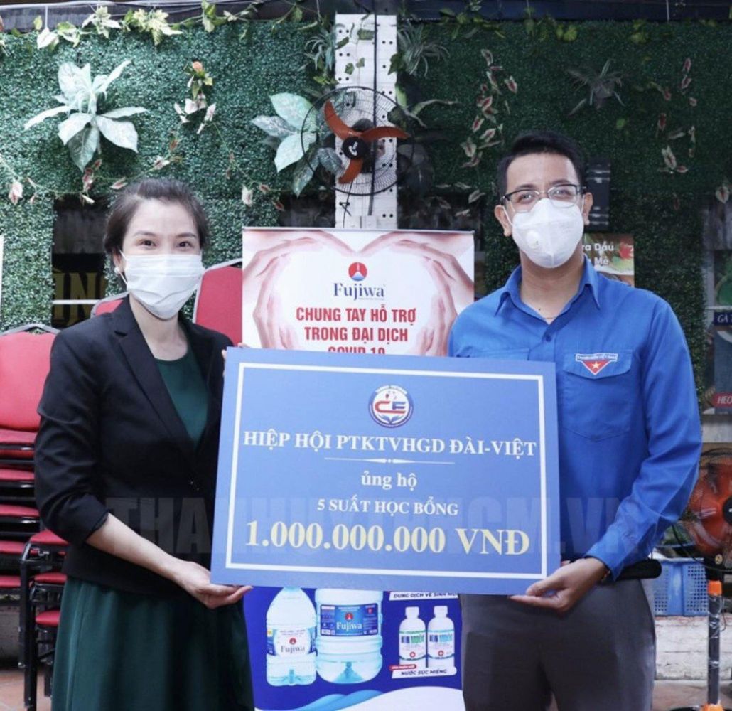 吳品蓁(左)捐贈濱智省建僑經費。 台越協會/提供