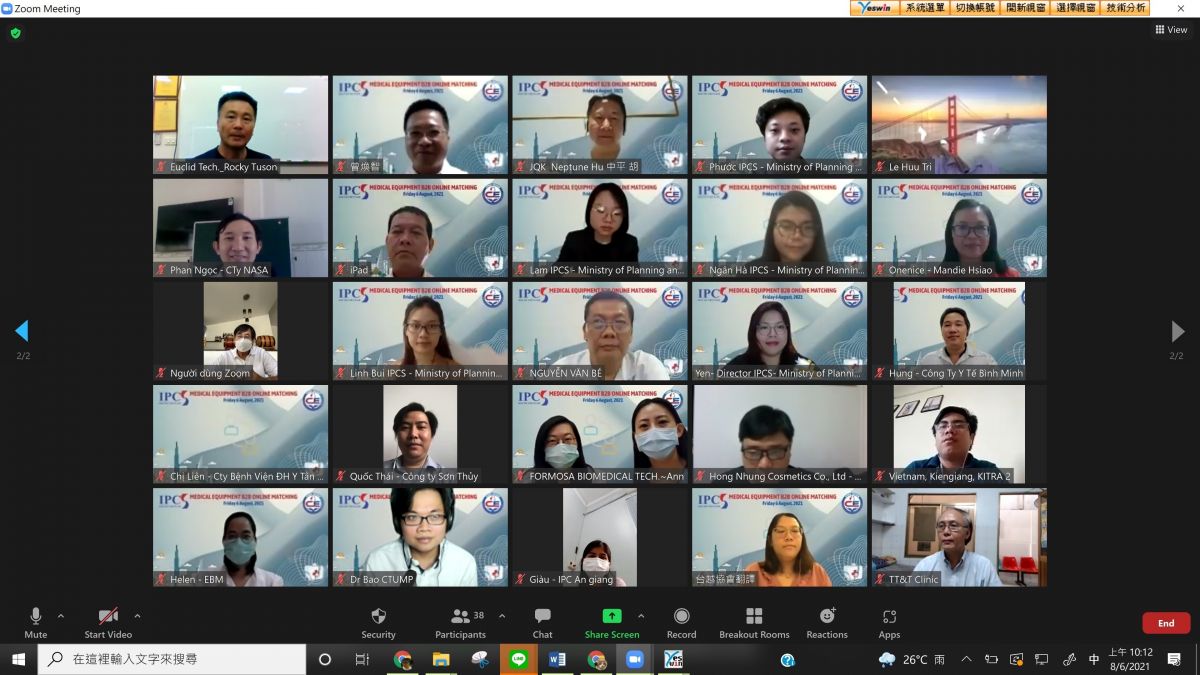 民國110年8月6日,台越經濟文化教育發展協會(以下簡稱台越協會)與越南南越投資促進處(以下簡稱IPCS)一起合作舉辦「台越醫療器材B2B媒合論壇」,針對越南市場需求而舉行此次媒合。