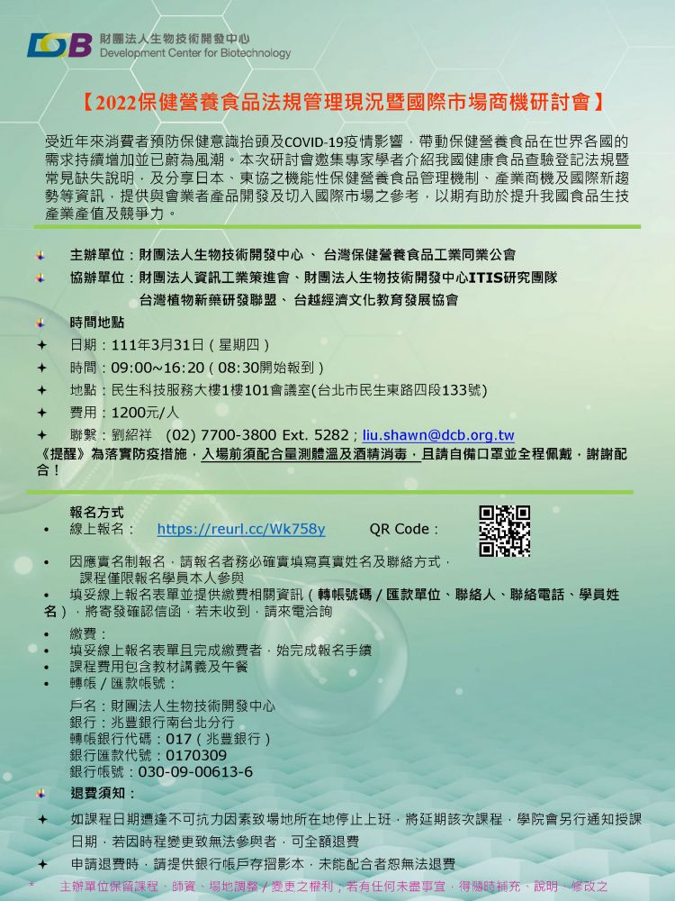 2022保健營養食品法規管理現況暨國際市場商機研討會