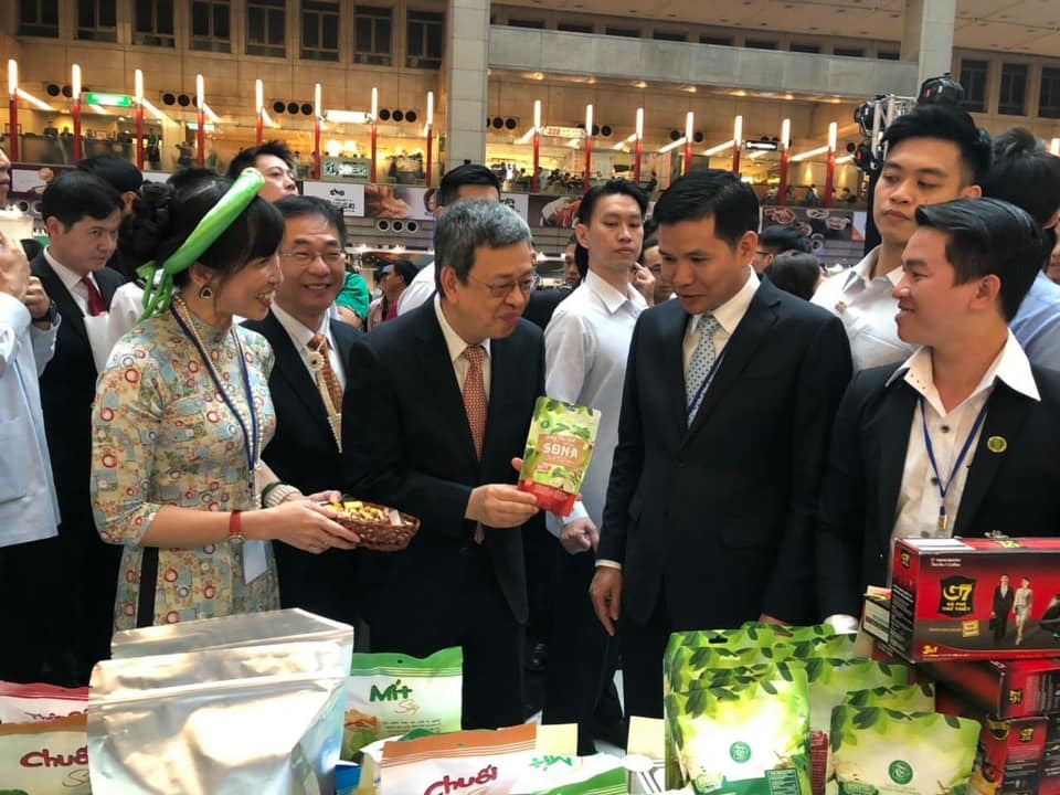 駐台北越南經濟文化辦事處阮英勇代表接待台灣副總統陳建仁,在越南文化區品嚐越南美食,讚不絕口。