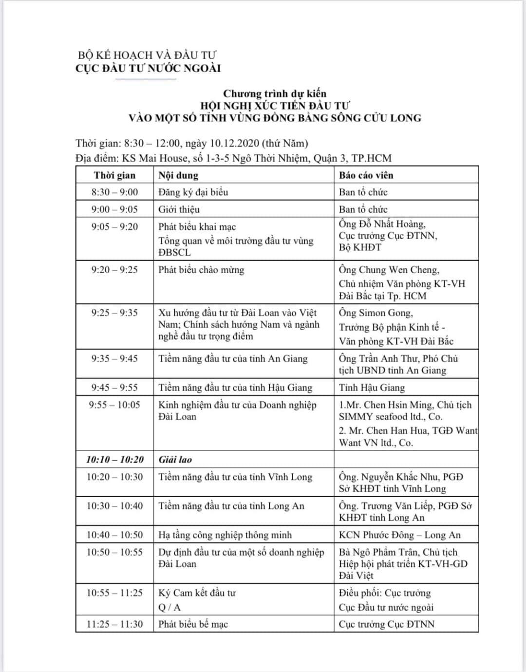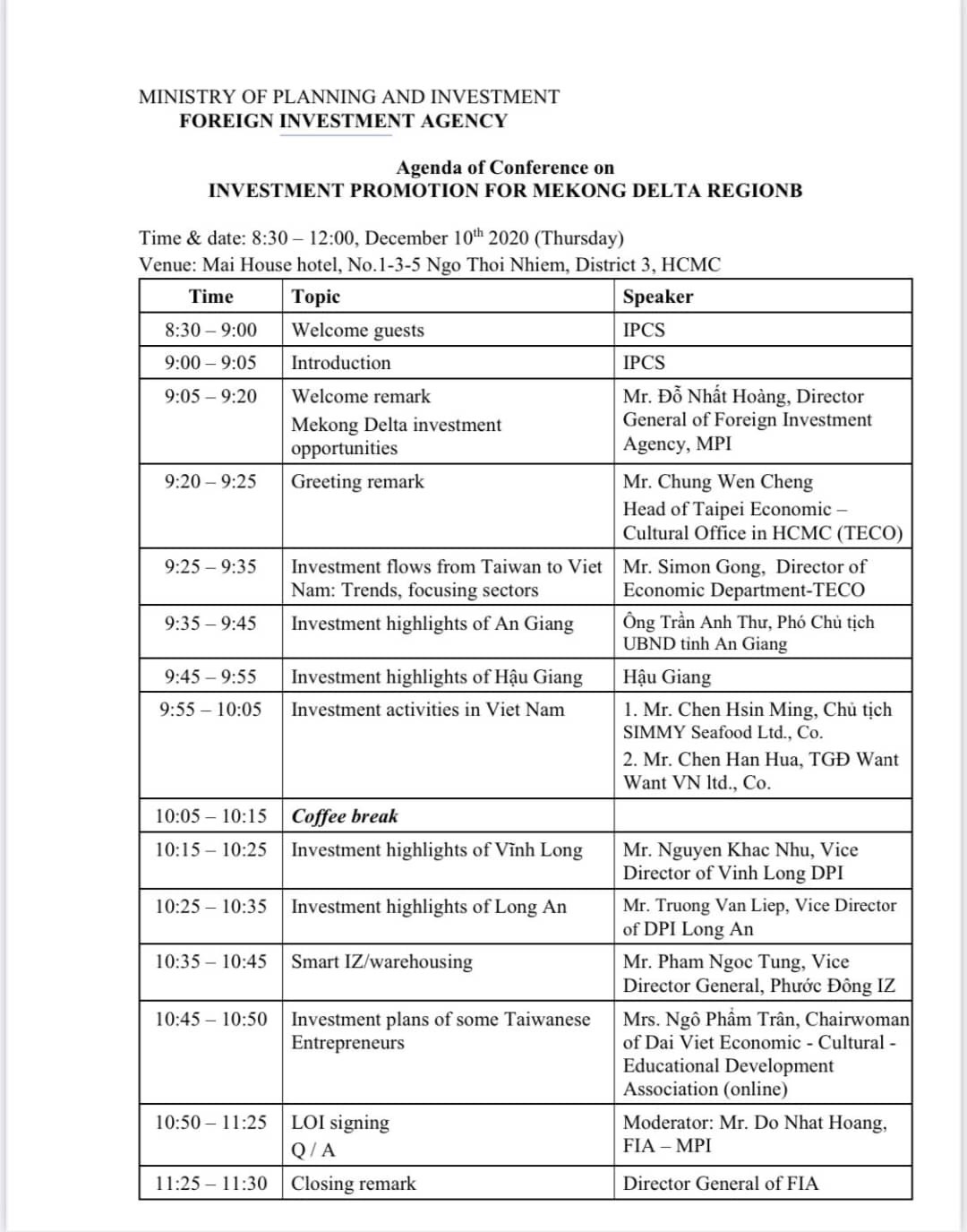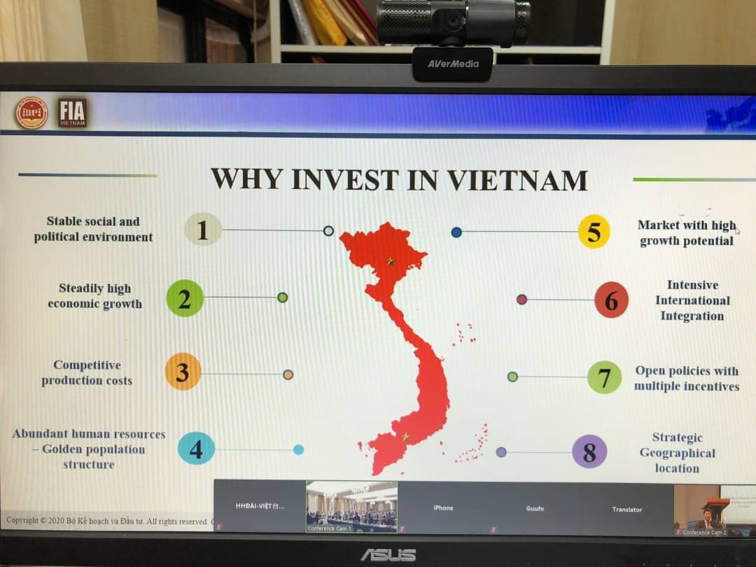 西元2020年12月10日,吳品蓁理事長榮耀授予越南投資部南越辦公室舉辦越南投資說明會論壇之與會者,向台商介紹關於越南下六省投資機會。