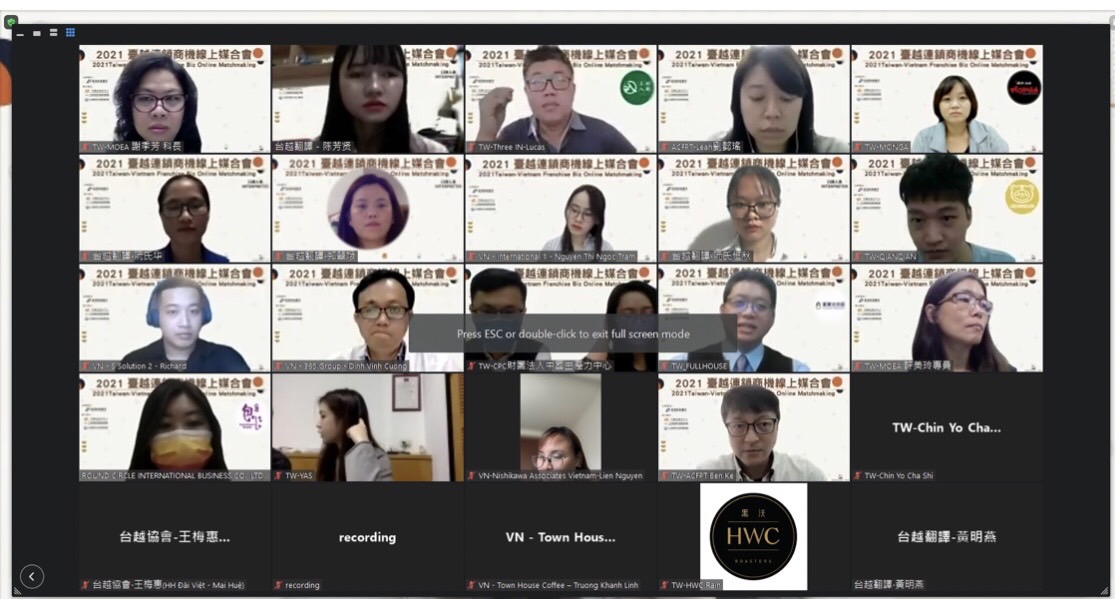2021年11月17日由中國生產力中心、臺灣連鎖加盟促進會及台越經濟文化教育發展協會(以下簡稱台越協會)執行臺灣經濟部商業司主辦「臺越連鎖商機線上媒合會」。臺灣有二十家知名的品牌連鎖企業參加與越南買主對接媒合。