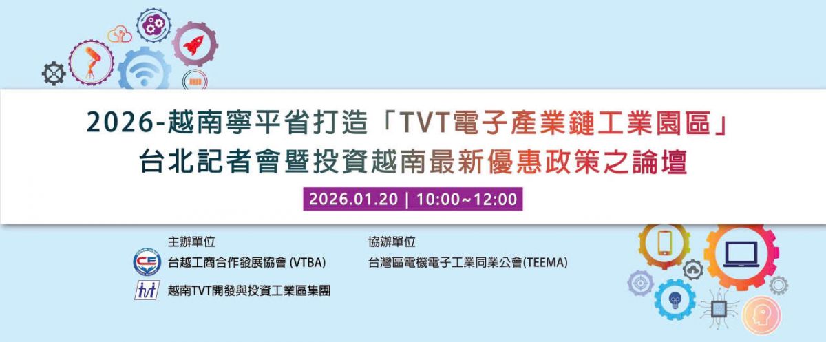 2026-越南寧平省打造「TVT電子產業鏈工業園區」- 台北記者會暨投資越南的最新優惠政策之論壇(1月20日台北場)